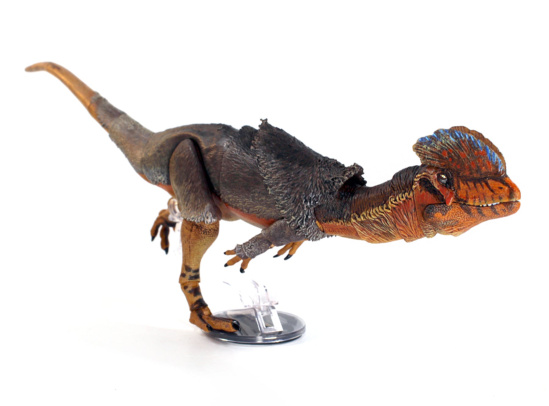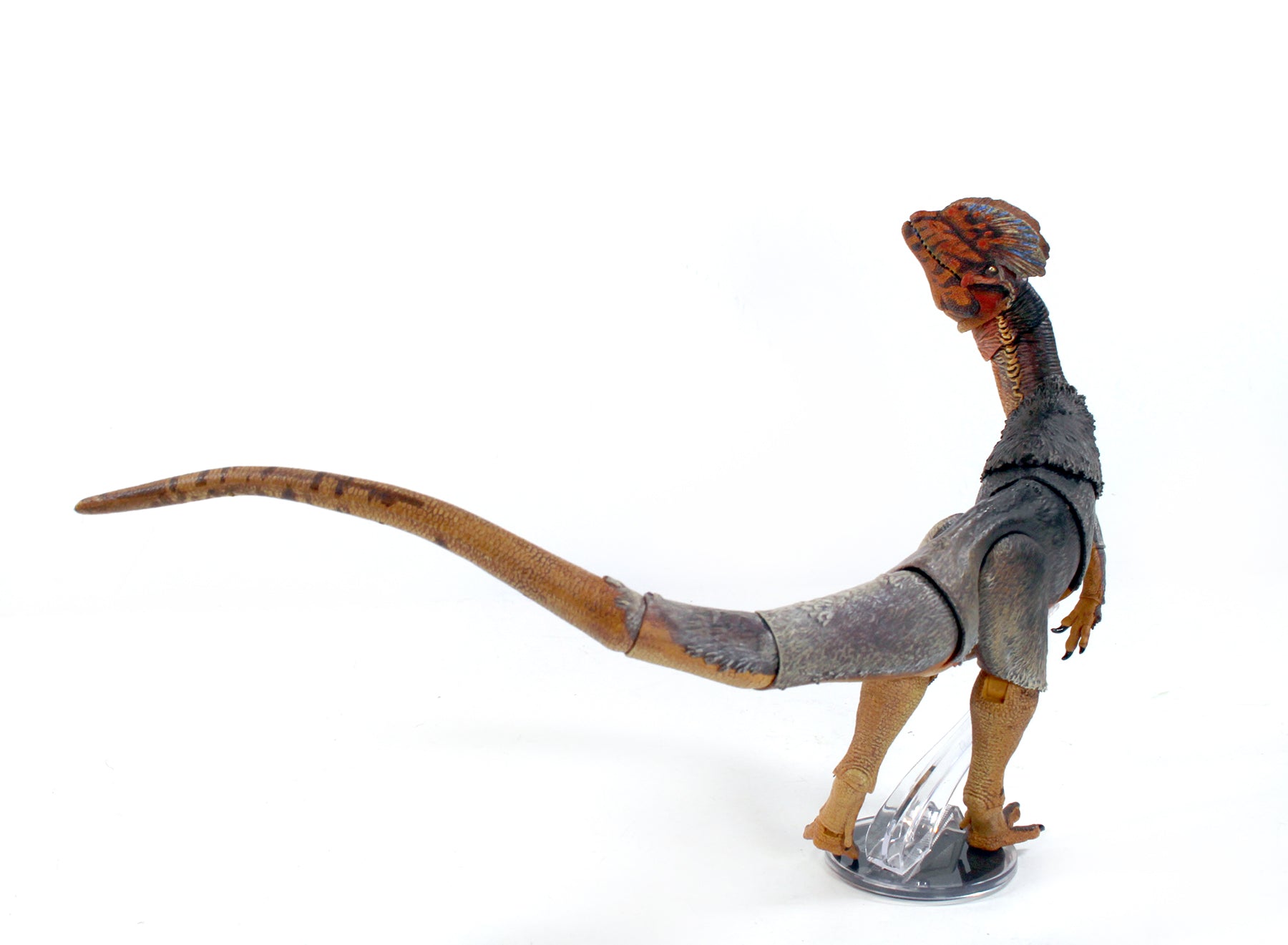 Includes (1) 1/18th scale Dilophosaurus wetherilli Cyberzoic action figure. Figure measures 14.5 inches (36.8cm) long and features 22 points of articulation, 3 sets of interchangeable feet, and clear plastic adjustable display base (small size) with optional parts. Featuring package art by Raul Ramos.